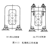 開口式機(jī)架與閉口 式機(jī)架相比,其強(qiáng)度和剛度相對來說要差些,但換輾較方便,打開上橫梁,即可用起重機(jī)將軋輥吊走,故一般用于換輥次數(shù)較頻繁的橫列式型鋼軋機(jī)上。